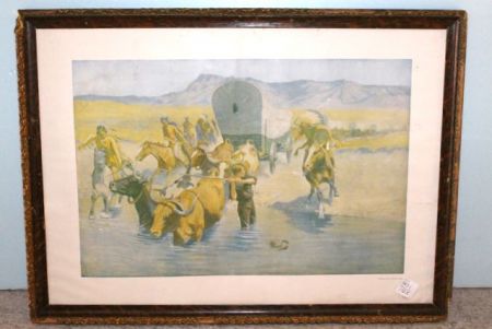 1431 Print of Indians Attacking Pioneers from Original Done by Remington