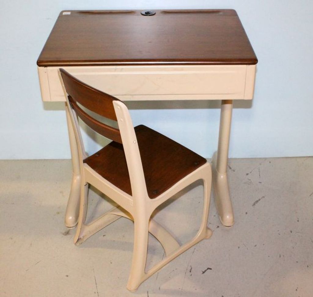 Child's Wood and Metal School Desk & Chair Child's Wood and Metal School Desk & Chair