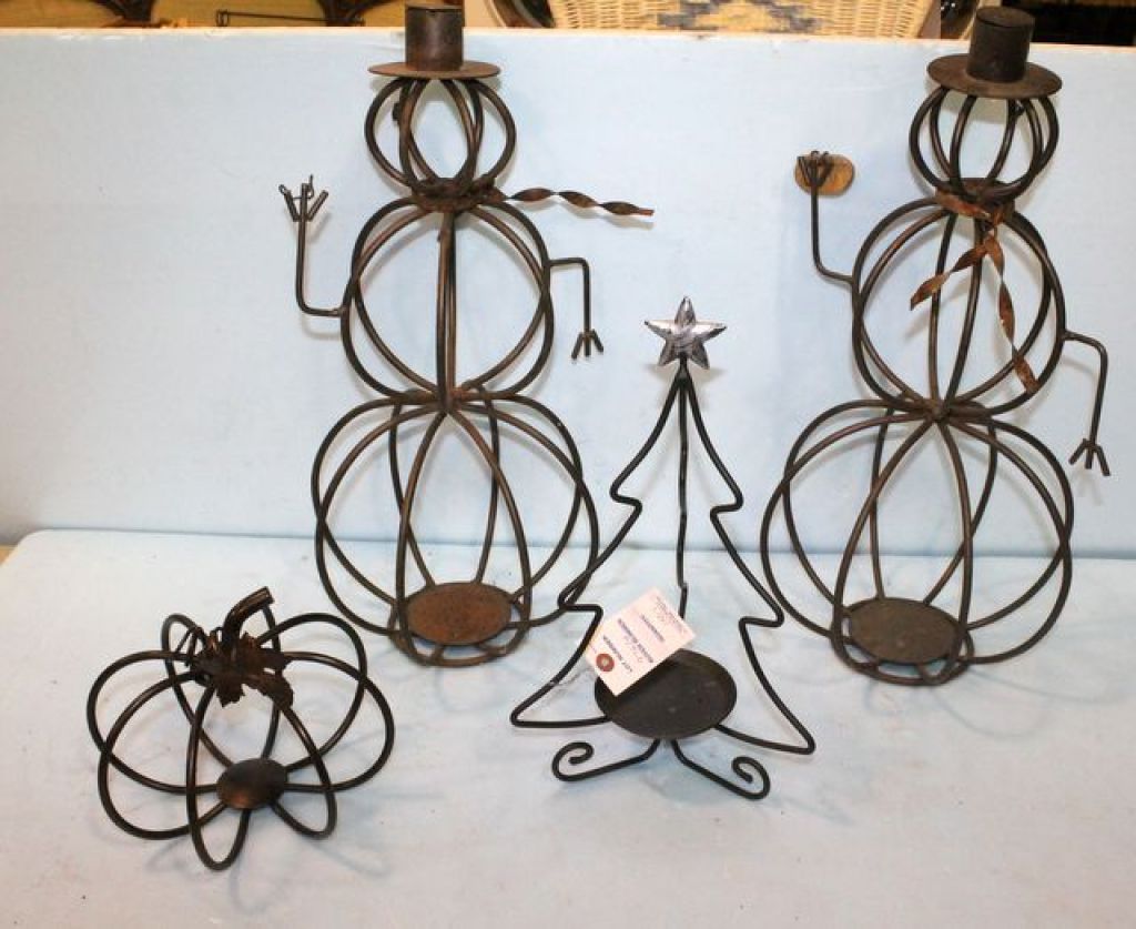 976 Two Iron Showmen, Iron Christmas Tree & Iron Pumpkin