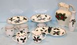1109 Hand Decorated Holly Compotes, Vase, Divided Dish, Pitcher, Creamer/Sugar & Two Cups