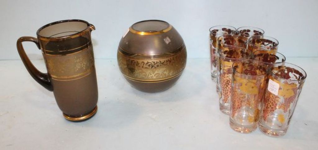 1115 Set of Eight Vintage Glasses, Rose Bowl & Pitcher