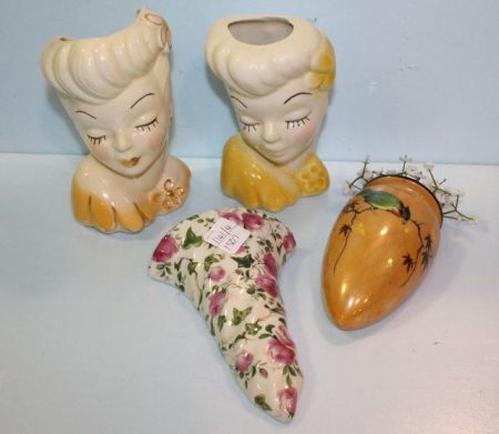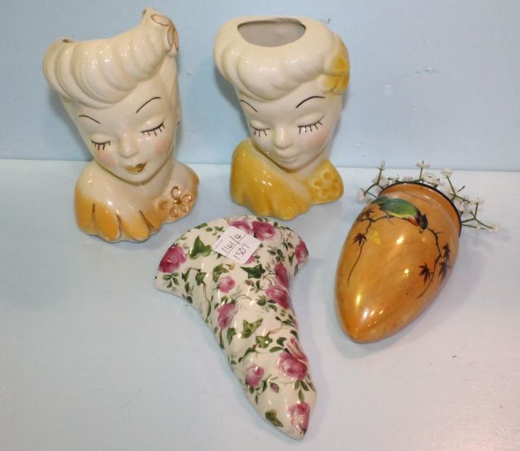 1161 Three Wall Pockets & One Head Vase
