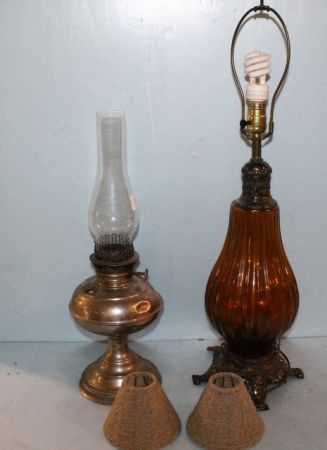 Amber Lamp, Aladdin Lamp & Two Beaded Shades Amber Lamp, Aladdin Lamp & Two Beaded Shades