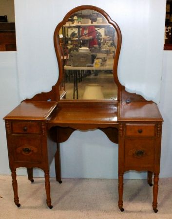 489 Walnut Depression Spindle Leg Vanity with Mirror