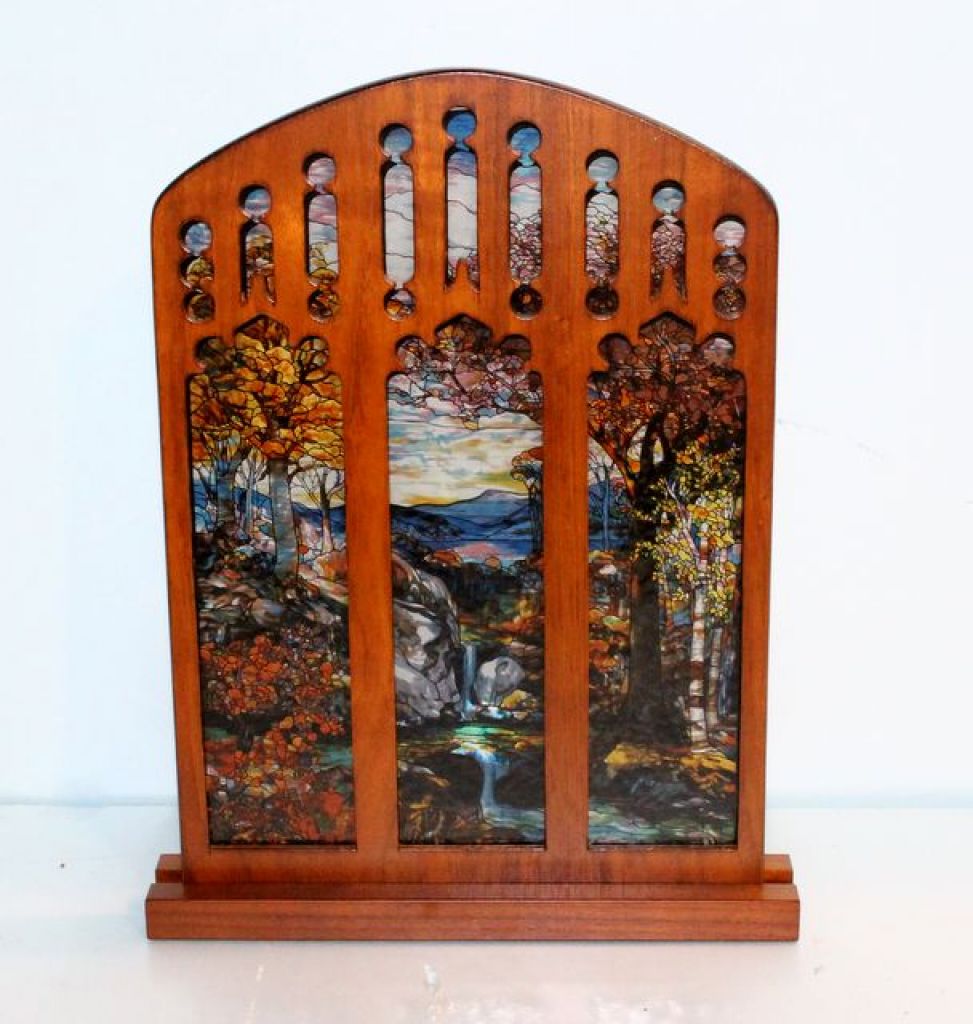 1194 Gothic Frame Stain Glass Window In Stand