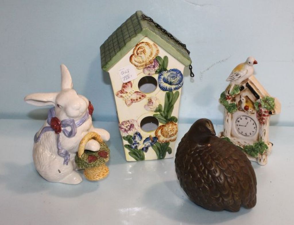 1268 Porcelain Clock, Birdhouse, Rabbit & Turtle Dove