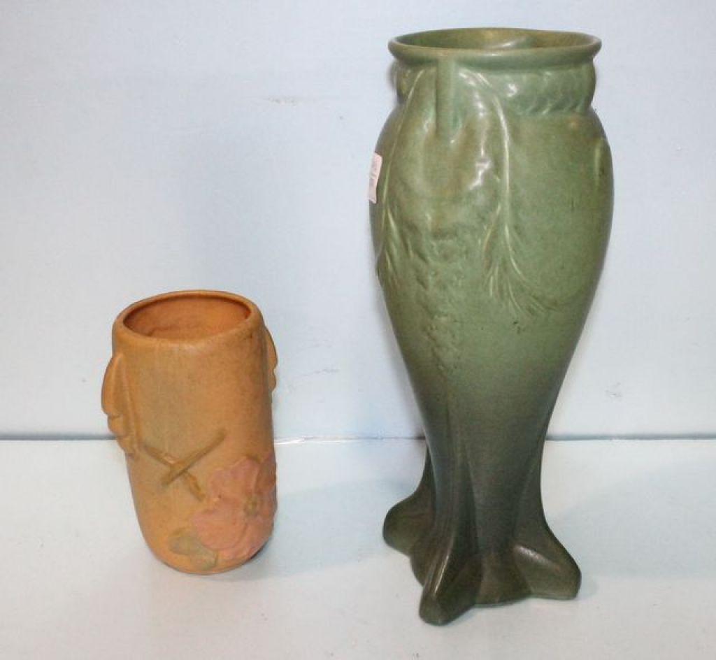 1304 Art Nouveaux Pottery Vase & Small Floral Pottery Vase