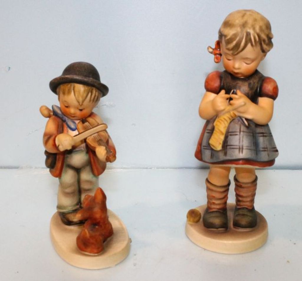 1305 "Puppy Love" German Figurine & Goebel Figurine of Young Girl Knitting