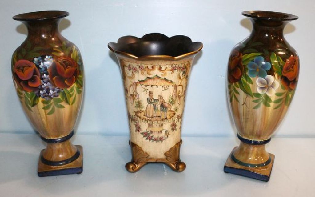 953 Three Painted Ceramic Vases