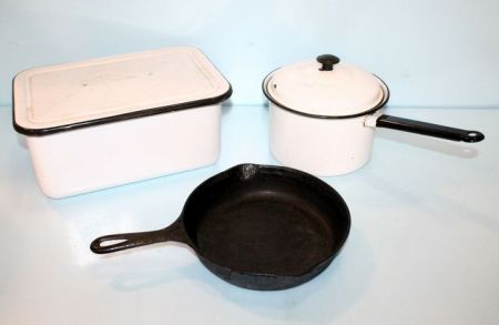 1371 Enamel Pot, Large Enamel Storage Container & Iron Pan
