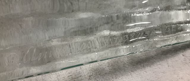 Annieglass Grove Plank Cheese Board, USA, GE200, natural wood grain and knots captured in this clear glass, 15"w., 7 1/2"d. Annieglass Grove Plank Cheese Board, USA, GE200, natural wood grain and knots captured in this clear glass, 15"w., 7 1/2"d.