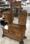 Victorian Style Oak Dresser, double hat side boxes, beveled mirror, two base drawers, good condition, 80"h., 52"w., 22"d. Victorian Style Oak Dresser, double hat side boxes, beveled mirror, two base drawers, good condition, 80"h., 52"w., 22"d.