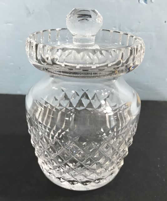 Waterford crystal jam Jar, good condition, marked Waterford, 4"h., 3"dia. Waterford crystal jam Jar, good condition, marked Waterford, 4"h., 3"dia.