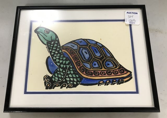 Walter Anderson Turtle, hand painted, newer piece, matted, framed, 7"h, 9"w. Walter Anderson Turtle, hand painted, newer piece, matted, framed, 7"h, 9"w.