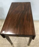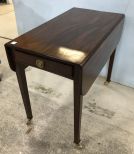 Antique Reproduction Federal Style Drop Side Table, single drawer, mahogany, brass casters, good condition, 29"h., 31"w., 18"d. Antique Reproduction Federal Style Drop Side Table, single drawer, mahogany, brass casters, good condition, 29"h., 31"w., 18"d.
