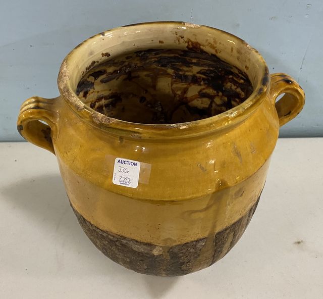 Decorative Glazed Pottery Urn, two tone, good condition, 14"h., 9"dia. Decorative Glazed Pottery Urn, two tone, good condition, 14"h., 9"dia.