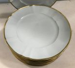 Anne Weatherley Designs Porcelain Chargers, made in Portugal, gold rimmed, 12 total, 12 1/2"dia. Anne Weatherley Designs Porcelain Chargers, made in Portugal, gold rimmed, 12 total, 12 1/2"dia.