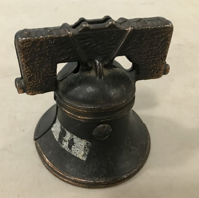 Arcade Bronze Finish Liberty Bell Cast Iron Bank with yoke, 4"h. Arcade Bronze Finish Liberty Bell Cast Iron Bank with yoke, 4"h.
