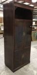 Drexel Chippendale Style Entertainment Cabinet, cherry finish, lighted, quad door, TV section, lighted top, missing bottom door knobs, 81"h., 31"w., 18"d. Drexel Chippendale Style Entertainment Cabinet, cherry finish, lighted, quad door, TV section, lighted top, missing bottom door knobs, 81"h., 31"w., 18"d.
