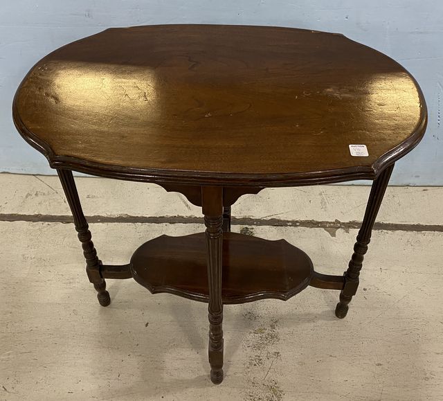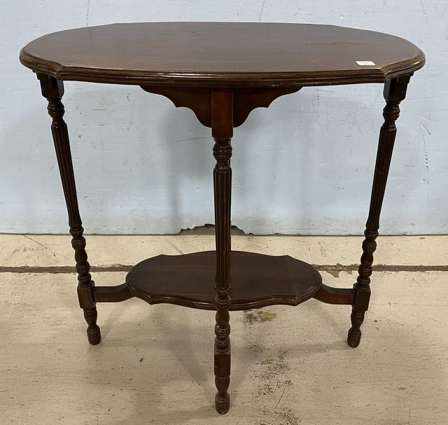 Vintage Mahogany Parlor Lamp Table, two tier, has age wear, 29"h., 28"w. Vintage Mahogany Parlor Lamp Table, two tier, has age wear, 29"h., 28"w.