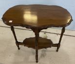 Vintage Mahogany Parlor Lamp Table, two tier, has age wear, 29"h., 28"w. Vintage Mahogany Parlor Lamp Table, two tier, has age wear, 29"h., 28"w.