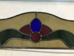 Stained Glass Leaded Hanging Window Panel, some small cracks, 32" x 10". Stained Glass Leaded Hanging Window Panel, some small cracks, 32" x 10".