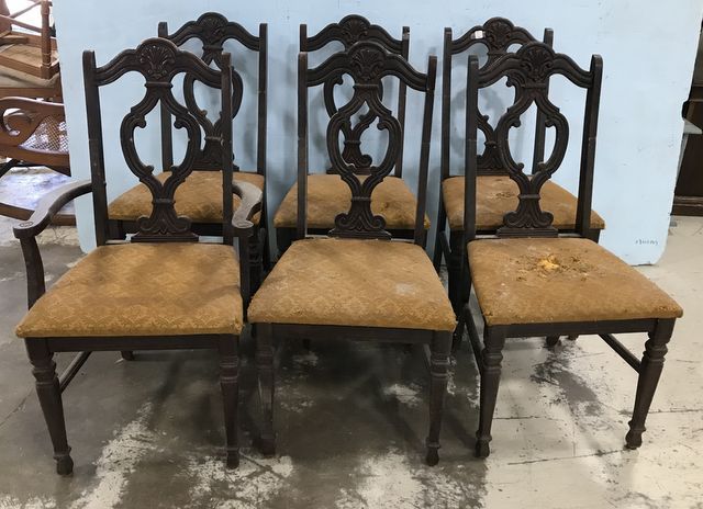 Six Vintage Dining Chairs, has mildew exposure, needs cleaning. Six Vintage Dining Chairs, has mildew exposure, needs cleaning.