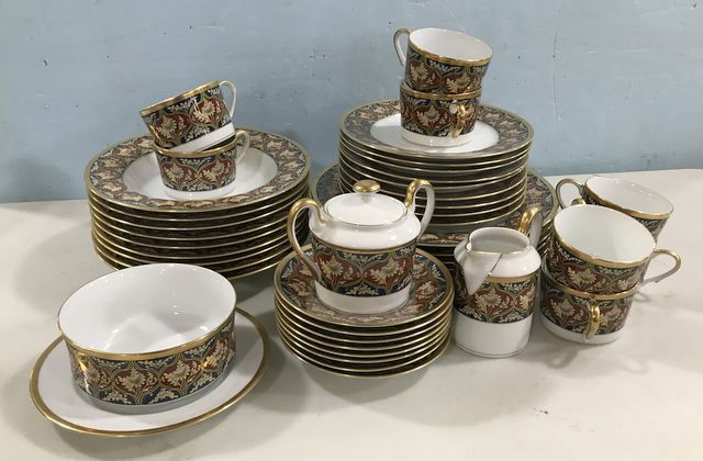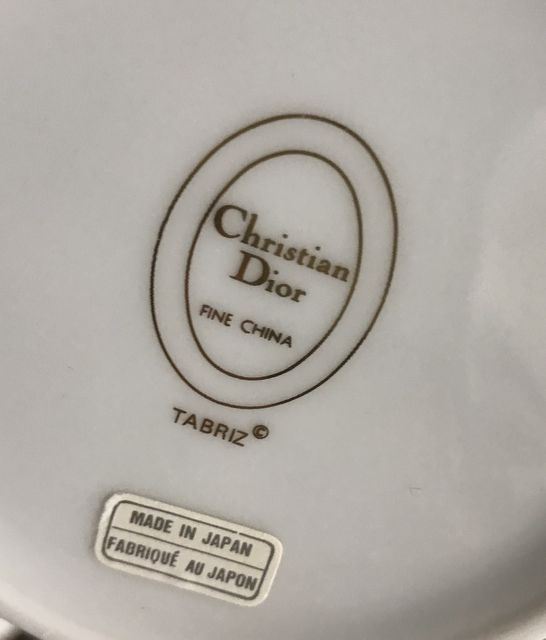 Christian Dior "Tabriz" China Set, Fine China, made in Japan, 6 dinner plates, 9 salad plates (one with chip), 9 soup bowls, 8 saucers, 8 cups, gravy, sugar, creamer. Christian Dior "Tabriz" China Set, Fine China, made in Japan, 6 dinner plates, 9 salad plates (one with chip), 9 soup bowls, 8 saucers, 8 cups, gravy, sugar, creamer.