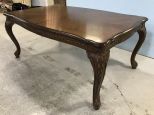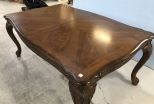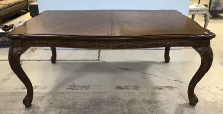 French Style Cherry Dining Table, two leaves, banded style top, has usage wear on finish, came from local furniture store, 30"h., 45"w., 6' long. French Style Cherry Dining Table, two leaves, banded style top, has usage wear on finish, came from local furniture store, 30"h., 45"w., 6' long.