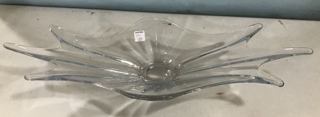 Art Decor Clear Glass Center Piece Bowl Signed Lieufeet, 27"w. Art Decor Clear Glass Center Piece Bowl Signed Lieufeet, 27"w.