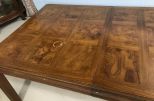 Sketchbook by Heritage Burl Walnut Parquetry Dining Room, 29"h., 75"long., 46"w, piece has worn areas on finish, also ring mark on top, three leaves, one leaf a moisture damage, 22"w. Sketchbook by Heritage Burl Walnut Parquetry Dining Room, 29"h., 75"long., 46"w, piece has worn areas on finish, also ring mark on top, three leaves, one leaf a moisture damage, 22"w.