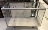 Vintage Glass Display Case, sliding back doors, top glass has crack, no shelves, just pedestal stands, not heavy, 38"h., 48"w., 21"d. Vintage Glass Display Case, sliding back doors, top glass has crack, no shelves, just pedestal stands, not heavy, 38"h., 48"w., 21"d.