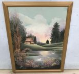 Landscape Barn Painting by IVEY, oil on canvas, framed, 27"h., 28"w. Landscape Barn Painting by IVEY, oil on canvas, framed, 27"h., 28"w.