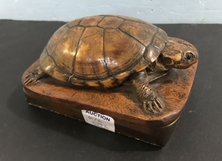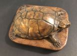 Mounted Style turtle (crack in shell), heavy plaque, paper weight, solid brass base, 5"w. Mounted Style turtle (crack in shell), heavy plaque, paper weight, solid brass base, 5"w.