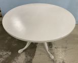 Queen Anne White Painted Pedestal Table, 48"dia., 29"h. Queen Anne White Painted Pedestal Table, 48"dia., 29"h.