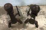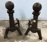 Antique Iron Cannon Ball Andirons, rustic finish, good condition, 18"h. Antique Iron Cannon Ball Andirons, rustic finish, good condition, 18"h.
