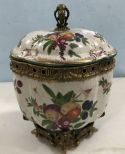 Decorative Covered Center Piece, new, with ornate stand, age crackle design, floral pattern, 12"h. Decorative Covered Center Piece, new, with ornate stand, age crackle design, floral pattern, 12"h.