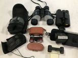 Group of Binoculars and Ranger Finder, Orion , Bushnell, range finder, needs battery, Lexage. Group of Binoculars and Ranger Finder, Orion , Bushnell, range finder, needs battery, Lexage.