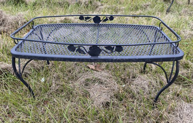 Wrought Iron patio coffee table, diamond pattern, top gallery, black, good condition. Wrought Iron patio coffee table, diamond pattern, top gallery, black, good condition.