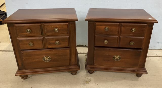 Pair of Broyhill Cherry Night Stand, two drawers, light scratches on finish, 26"h., 26"w, 17"d. Pair of Broyhill Cherry Night Stand, two drawers, light scratches on finish, 26"h., 26"w, 17"d.
