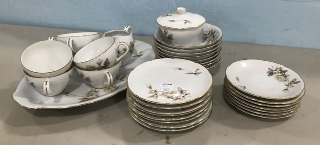 Ucagco "Oxford Rose" China, 8 dessert plates, platter, creamer, 6 cups, sugar, 8 bowls, 7 saucers. Ucagco "Oxford Rose" China, 8 dessert plates, platter, creamer, 6 cups, sugar, 8 bowls, 7 saucers.
