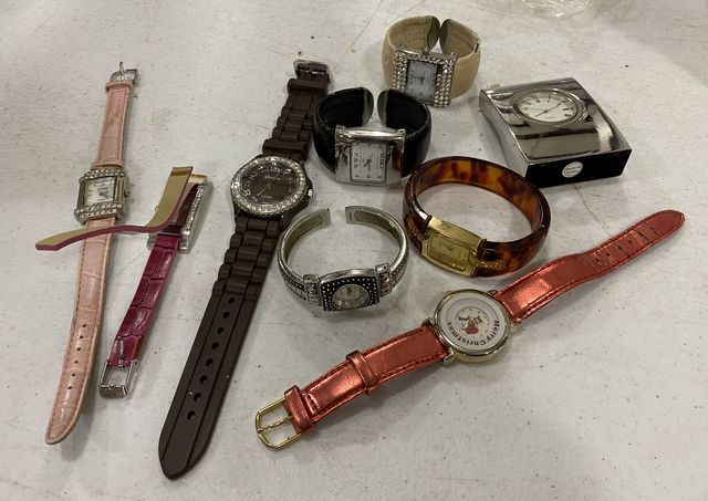 Collection of wrist watches, 8 assorted style watches, metal clock. Collection of wrist watches, 8 assorted style watches, metal clock.