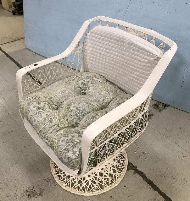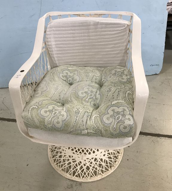 White Painted Woven Style Arm Chair, pedestal base. White Painted Woven Style Arm Chair, pedestal base.
