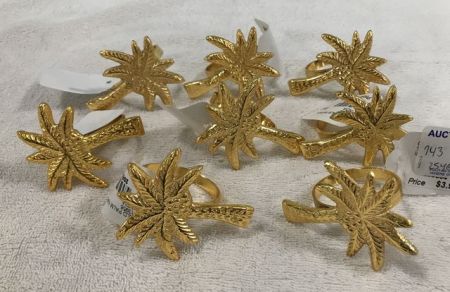8 Gold Palm Napkin Rings, were 3.95 each, new condition. 8 Gold Palm Napkin Rings, were 3.95 each, new condition.