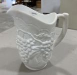 Vintage Milk Glass Grapevine Pitcher, 8 1/2"h. Vintage Milk Glass Grapevine Pitcher, 8 1/2"h.