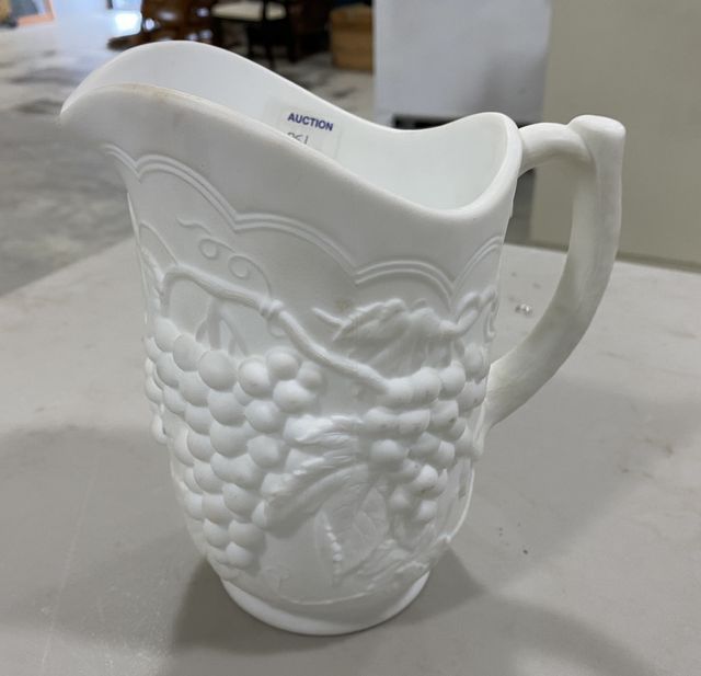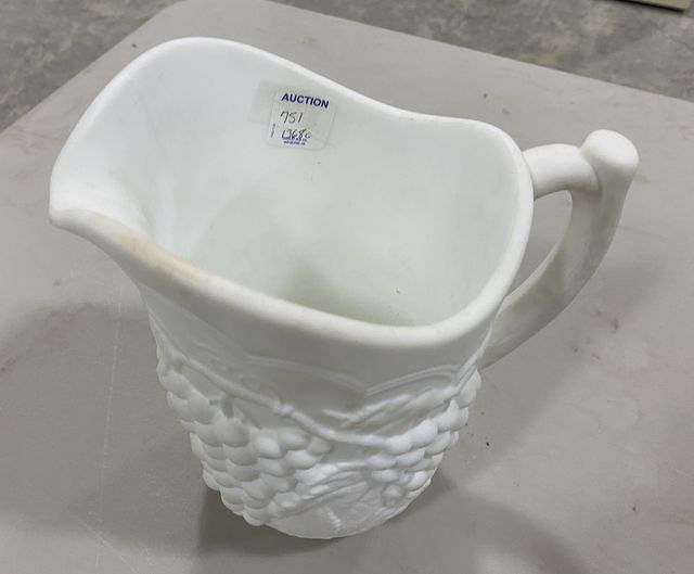 751 Vintage Milk Glass Grapevine Pitcher