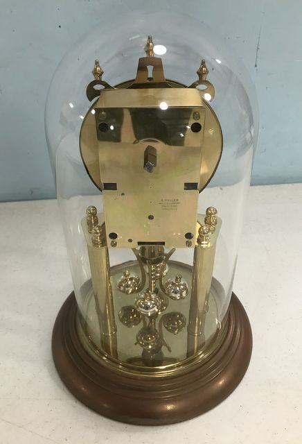 Elgin Anniversary Clock, with glass dome, brass frame, 11"h. Elgin Anniversary Clock, with glass dome, brass frame, 11"h.