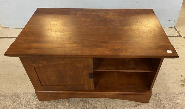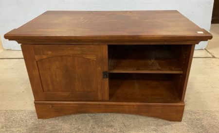 Modern Cherry tv stand, single door, open front storage, modern piece, 23"h., 40"w., 23"d. Modern Cherry tv stand, single door, open front storage, modern piece, 23"h., 40"w., 23"d.