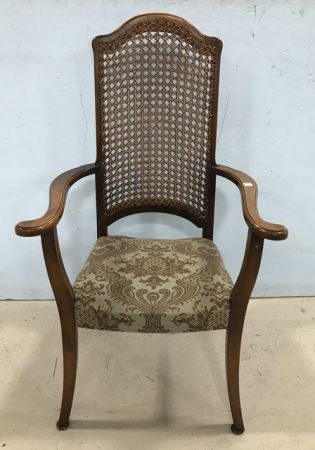 French Walnut side chair, seat has been refurbished, cane back, good condition, 44"h. French Walnut side chair, seat has been refurbished, cane back, good condition, 44"h.