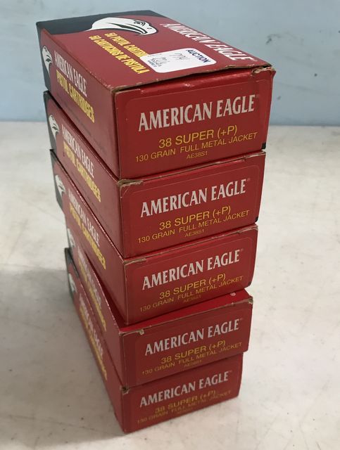 American Eagle 38 Super P Full Metal Jacket Ammo, 130 grain, 250 cartridges. American Eagle 38 Super P Full Metal Jacket Ammo, 130 grain, 250 cartridges.